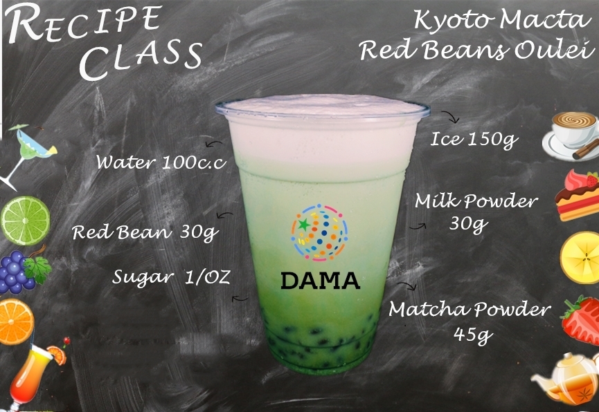 Matcha Au Lai Powder、Milk Powder、Sugar、Hot water、Ice、Red Bean
