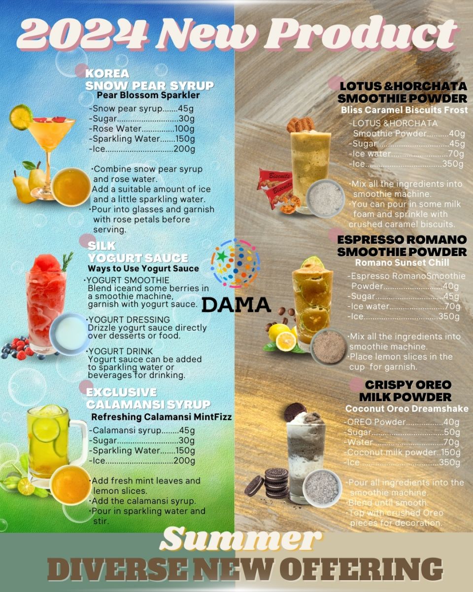 Three new special smoothie powders & Three new special flavor syrup will delight your taste buds.