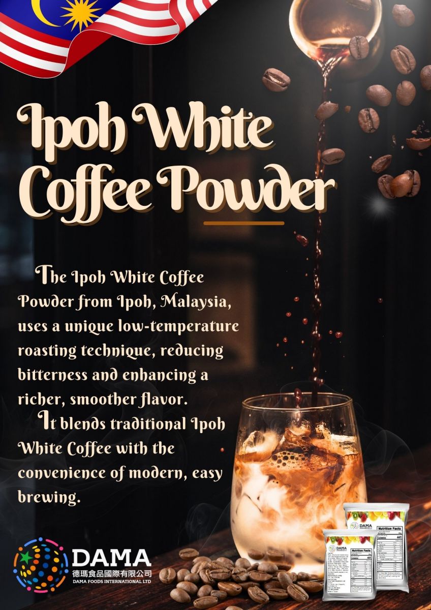 Ipoh White Coffee Powder from Ipoh, Malaysia, is made using a special low-temperature light roasting technique,