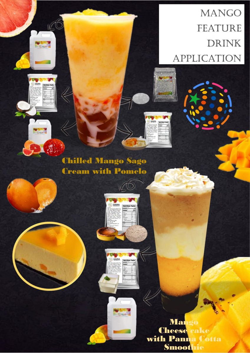 德瑪創新結合把甜品加入飲品中,香港的特色甜點「楊枝甘露」,加入了清爽的茶凍和紅柚果粒,還原經典風味,美式經典的「起司蛋糕」,利用奶酪呈現慕斯的柔順奶香,紐約起司蛋糕冰沙與芒果為最佳搭配,絕對是今年夏季不可錯過的飲品!!