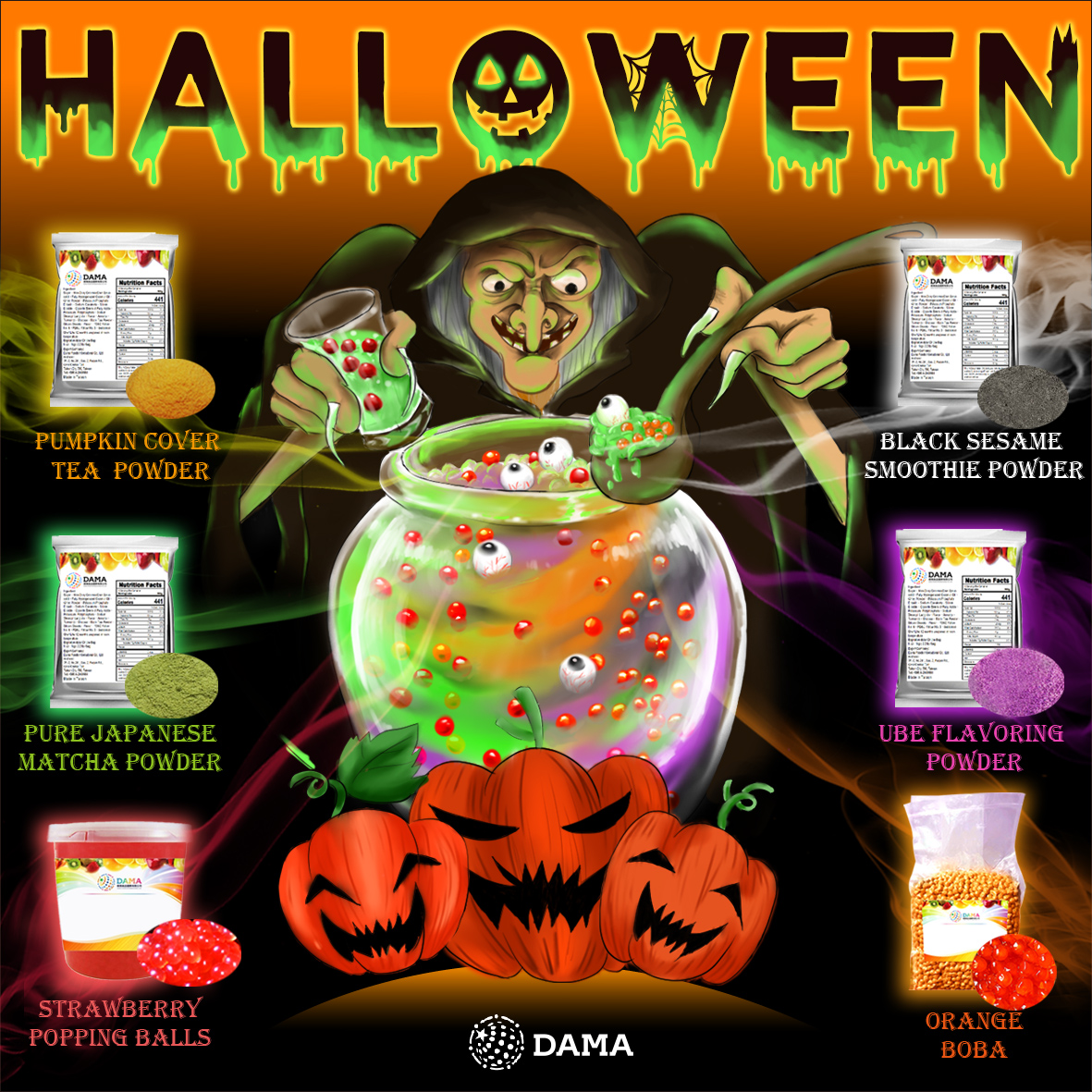 跟著德瑪食品,編出恐怖的故事與飲品吧。 我不說了,你背後有魔女再看著你,不給糖,就搗蛋。