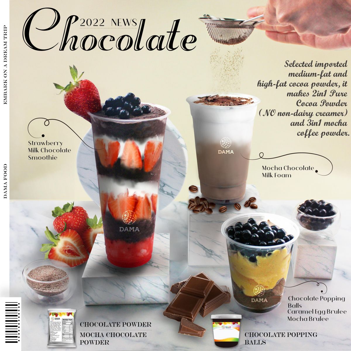 巧克力爆爆珠,風味甜香,如巧克力甜點般的享受,搭配各式飲品、冰品,都是最佳的選擇.